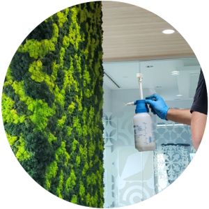 High humidity can cause mould and odour. Our special spray removes bacteria, restores freshness, and protects the moss.